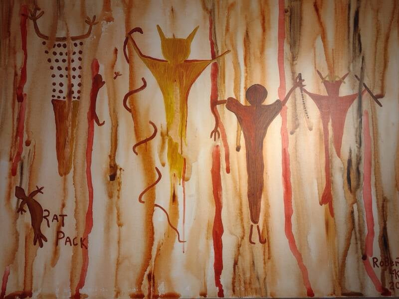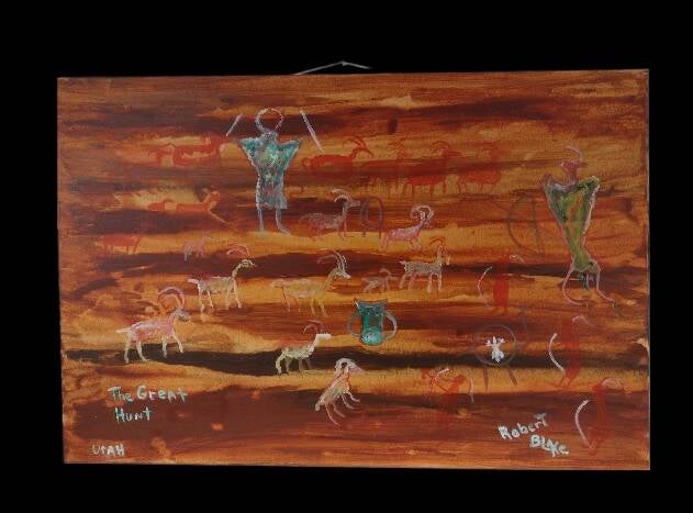 This is what the above panting looks like In The DARK 15 x 30 Cave Graffiti Acrylic on Canvas