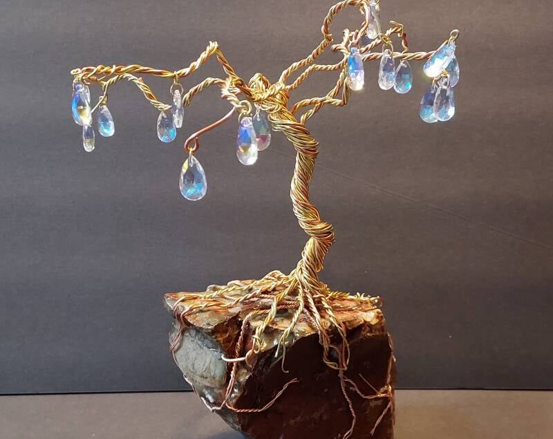 Cute Small Gold Wire tree covered in AB Crystals for a spactacular shine when the sun hits your desk.