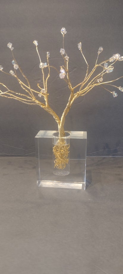 Small 6" all wire tree under a dome. Gold wire in a windswept design.
